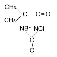本品為白色或米白色結(jié)晶粉末,微溶于水(20℃時(shí)1L水溶解2.5g溴氯海因),溶于氯仿、乙醇等有機(jī)溶劑,在強(qiáng)酸或強(qiáng)堿中易分解,干燥時(shí)穩(wěn)定,有輕微的刺激性氣味。